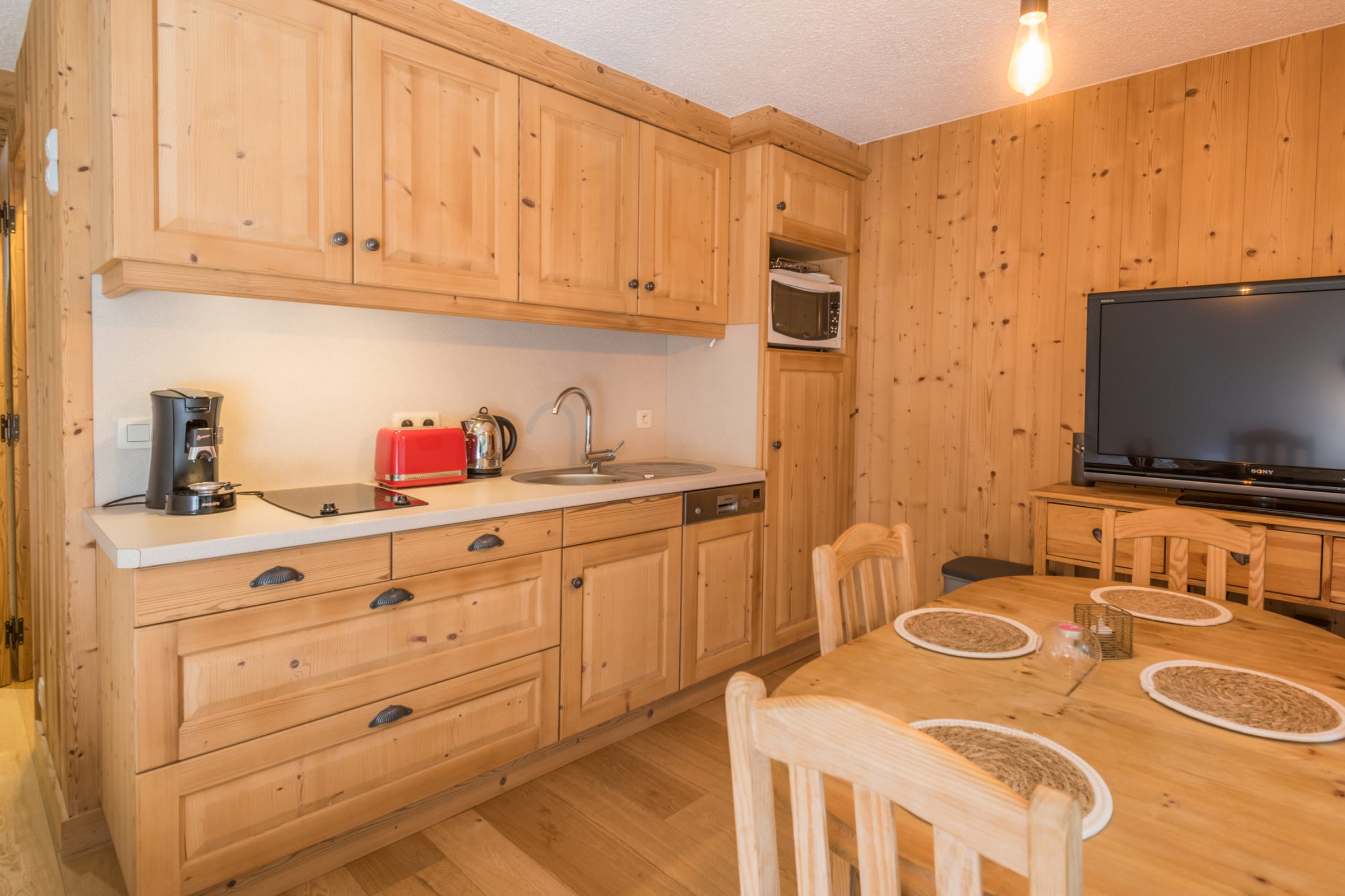 - a fully-equipped open kitchen (coffee machine, toaster, microwave, hob, dishwasher, fridge),