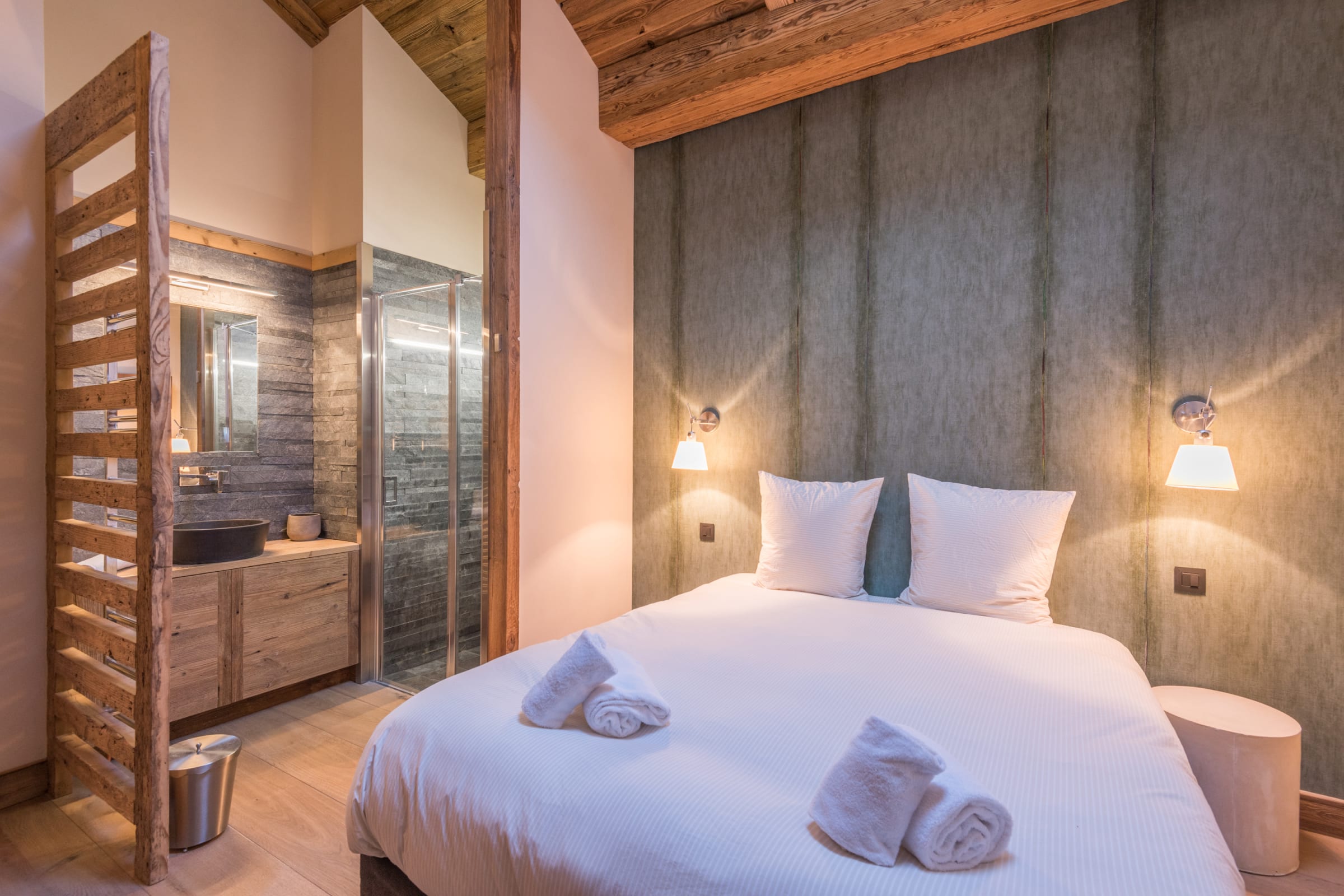 - a master bedroom with queen-size bed (160 cm) and en-suite shower room,