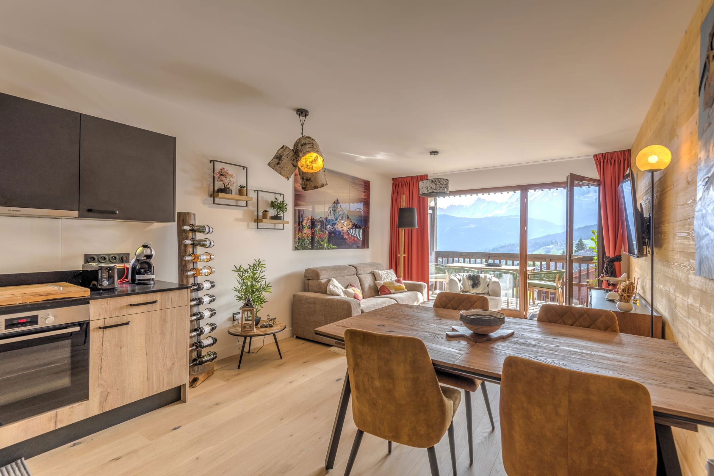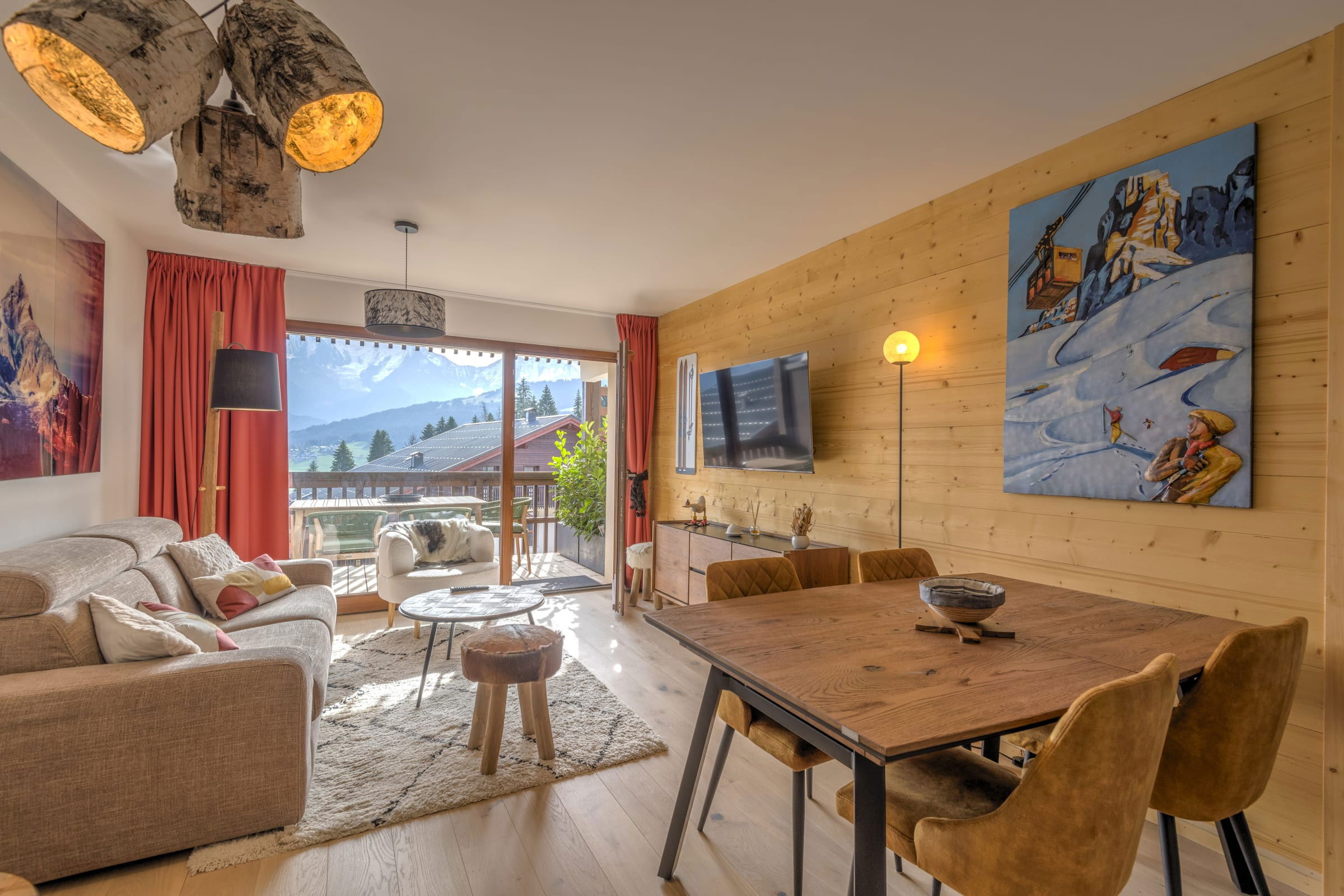 Located on high ground in the gorgeous "Les Roches Blanches" residence in the village of Combloux, this accommodation offers you a position close to Megève and two ski areas: "Les Portes du Mont-Blanc" and "Evasion Mont-Blanc". In summer, take advantage of the hiking and activities on offer in the surrounding resorts.