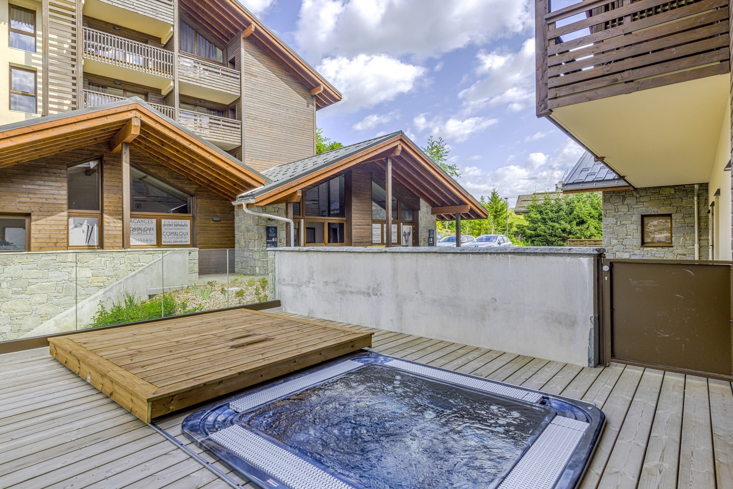 You will have access to the residence's many facilities: heated indoor and outdoor swimming pool, jacuzzi, solarium, massage room, sauna, hammam, games room (with table football), petanque pitch, reception room with tapas bar, co-working area facing Mont Blanc, furnished communal areas, laundry room (cash payment).