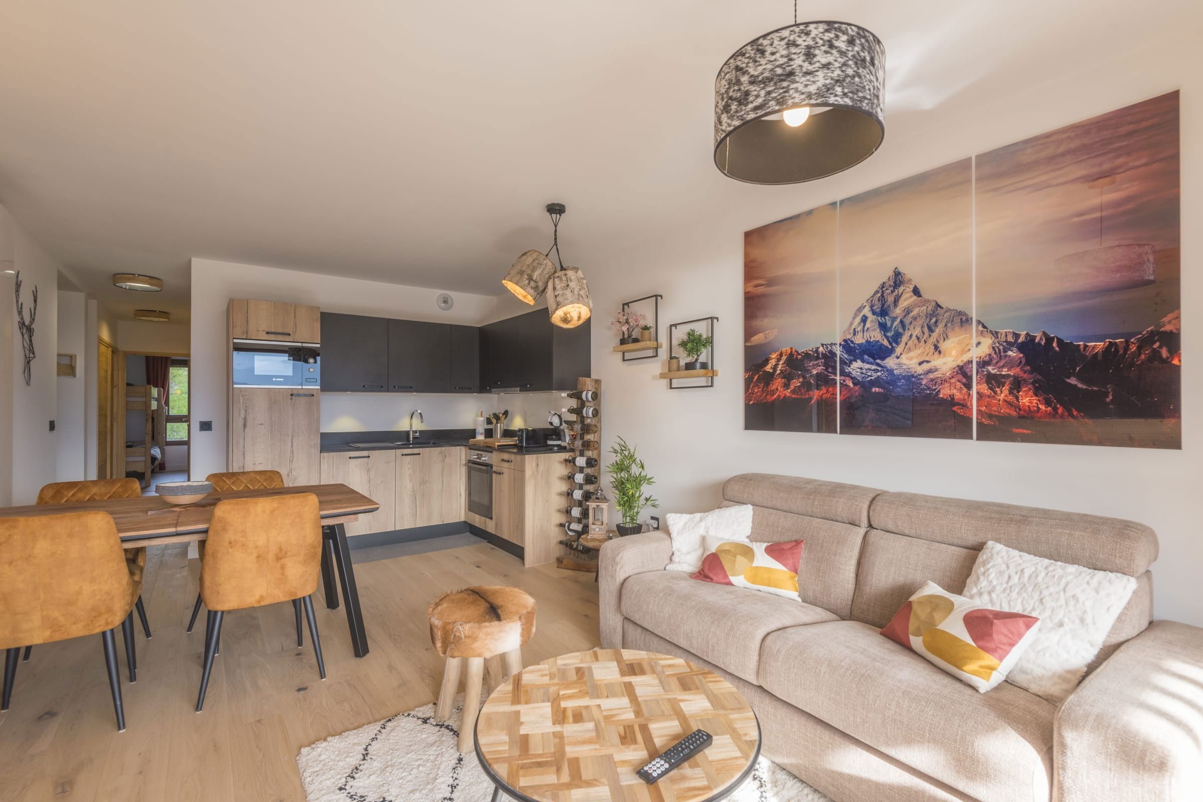 Located opposite a ski bus that will take you to the centre of Combloux and the ski resort in just a few minutes, you will be in the best place to enjoy the huge ski area and practise your favourite board sports. All the shops, including ski hire and equipment hire, are just a few minutes away, as are numerous bars and restaurants, such as Le Loup Comblé, Le Chalet d'Emilie, Le Coin Savoyard, as well as many small mountain restaurants. Enjoy a variety of shops in the village of Combloux, not forgetting the Wednesday morning market in the main village square! In summer, this village offers you a dream setting between the mountains and the lake: swim at the biotope lake in a natural setting with a magnificent view of Mont Blanc. Hike in the heart of the Alps between farms and mountain pastures, or choose the mountain bike option to exercise and enjoy exceptional views of the Alps. Combloux offers a wide range of activities to delight young and old alike.