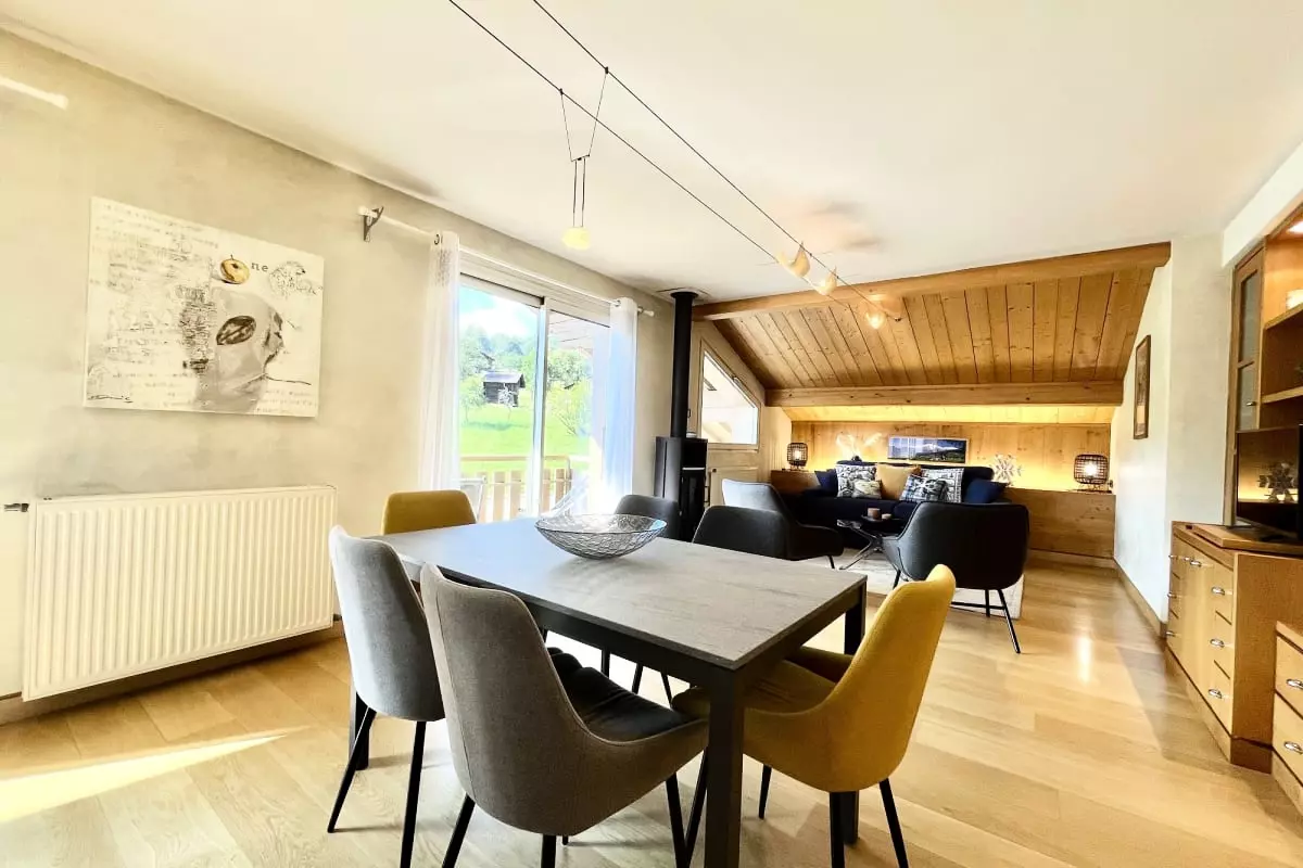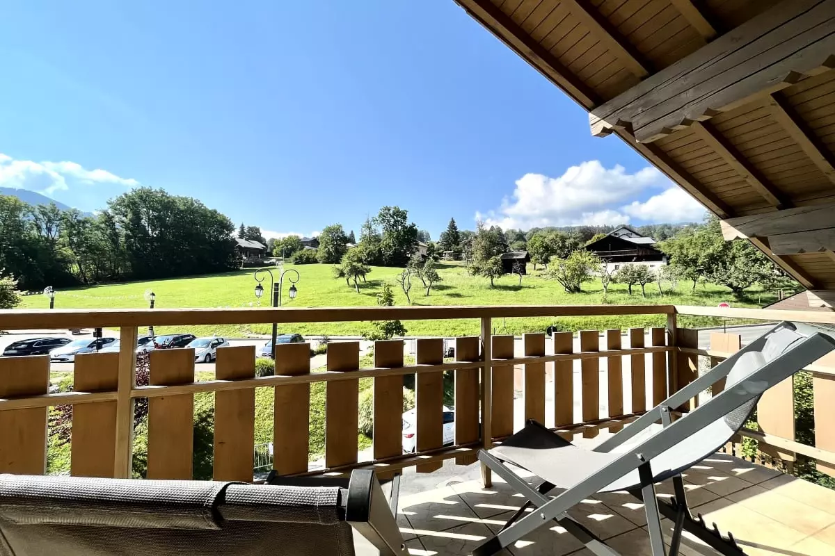 Combloux is located in the Pays du Mont-Blanc, nestled against the Aravis mountain range, facing the Mont-Blanc and Fiz mountain ranges, with a 360° panorama.