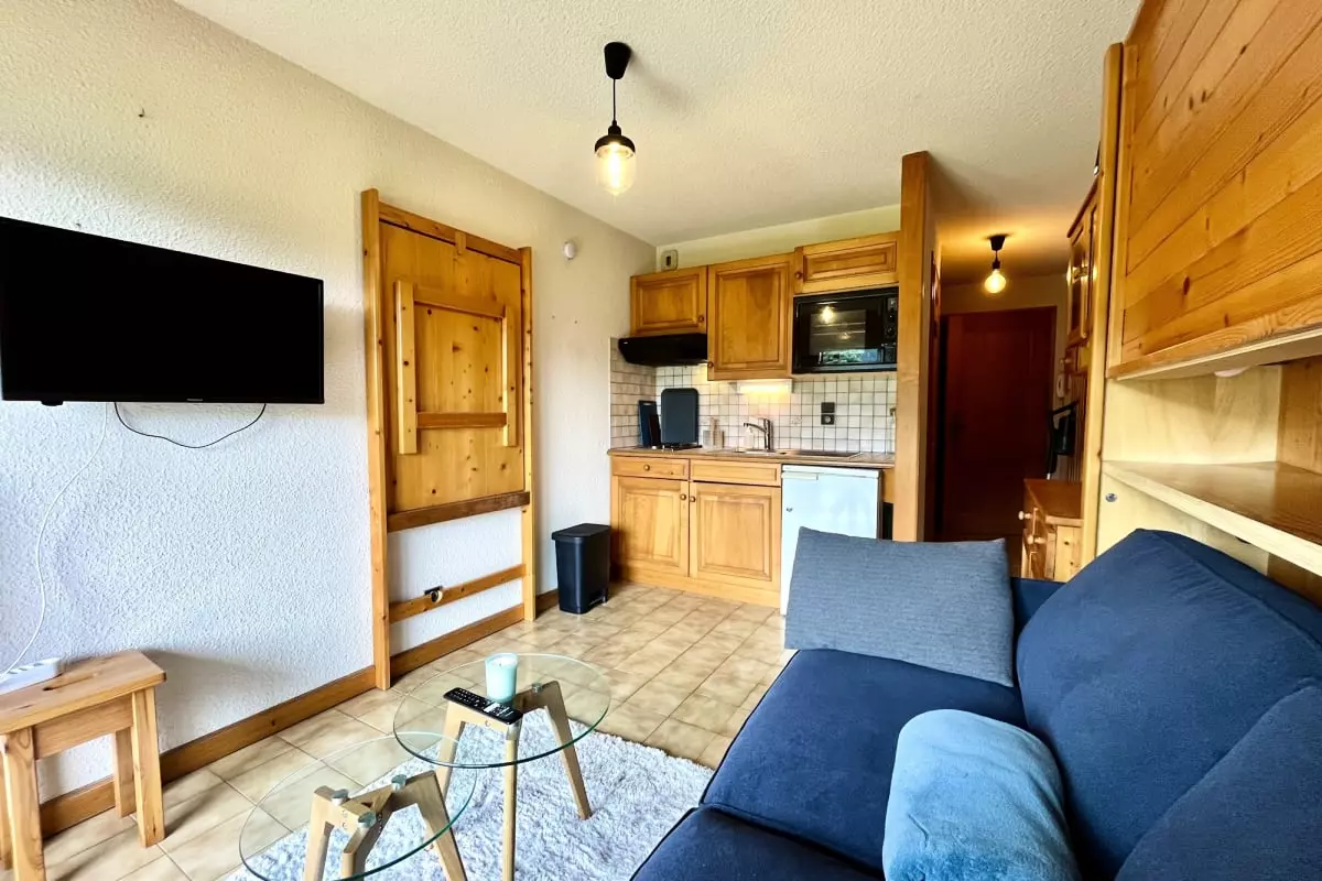 Atmosphere and decoration: This bright studio combines mountain charm and warm decoration to make you feel at home.