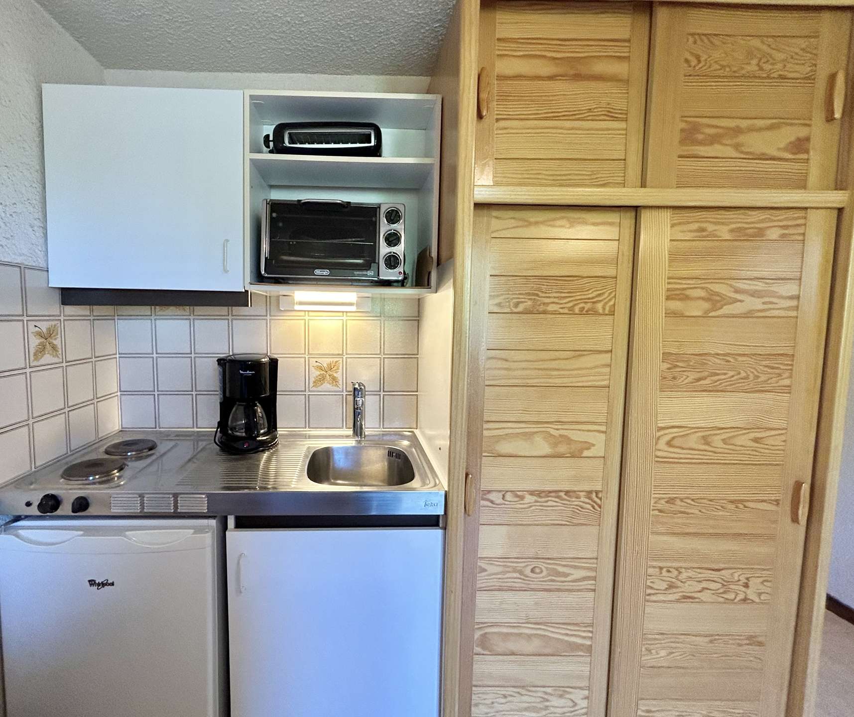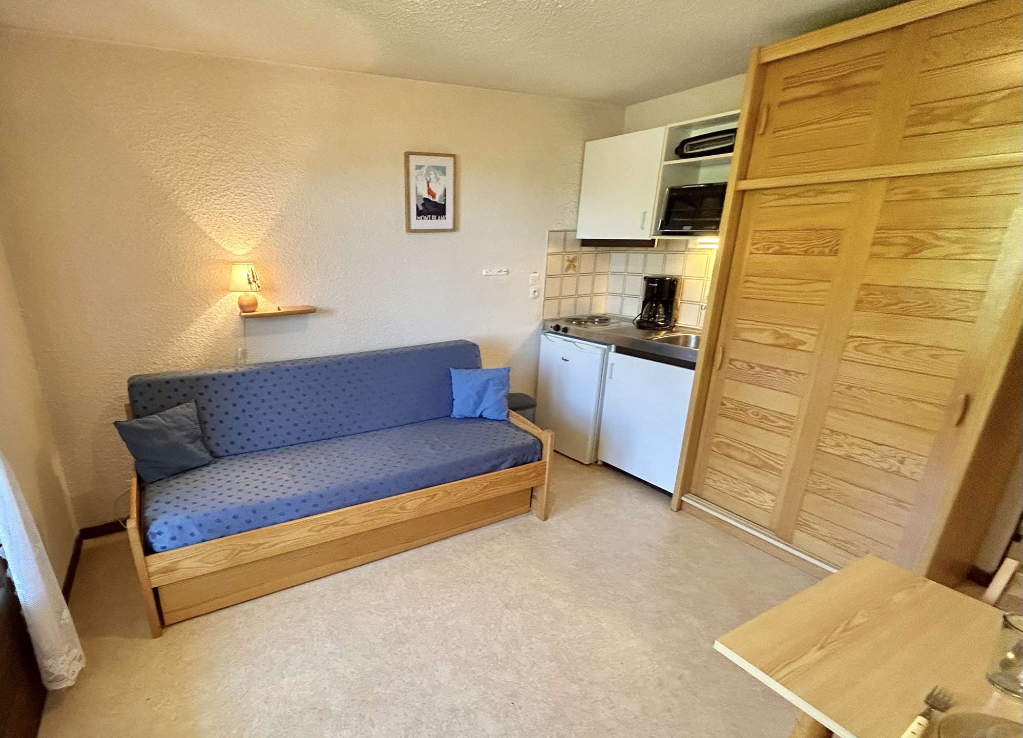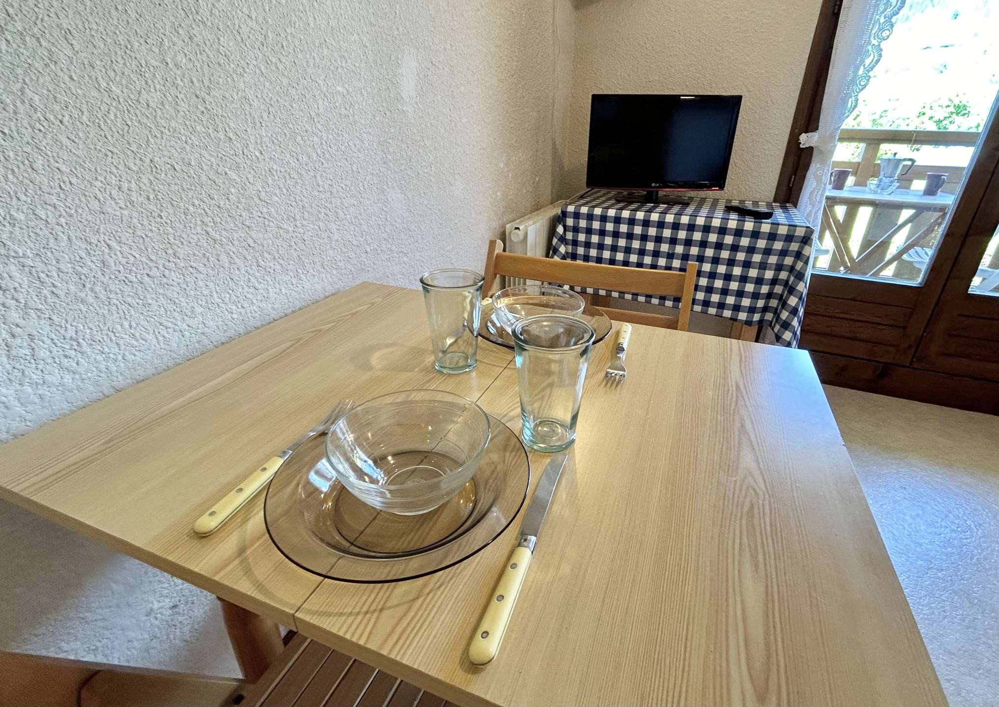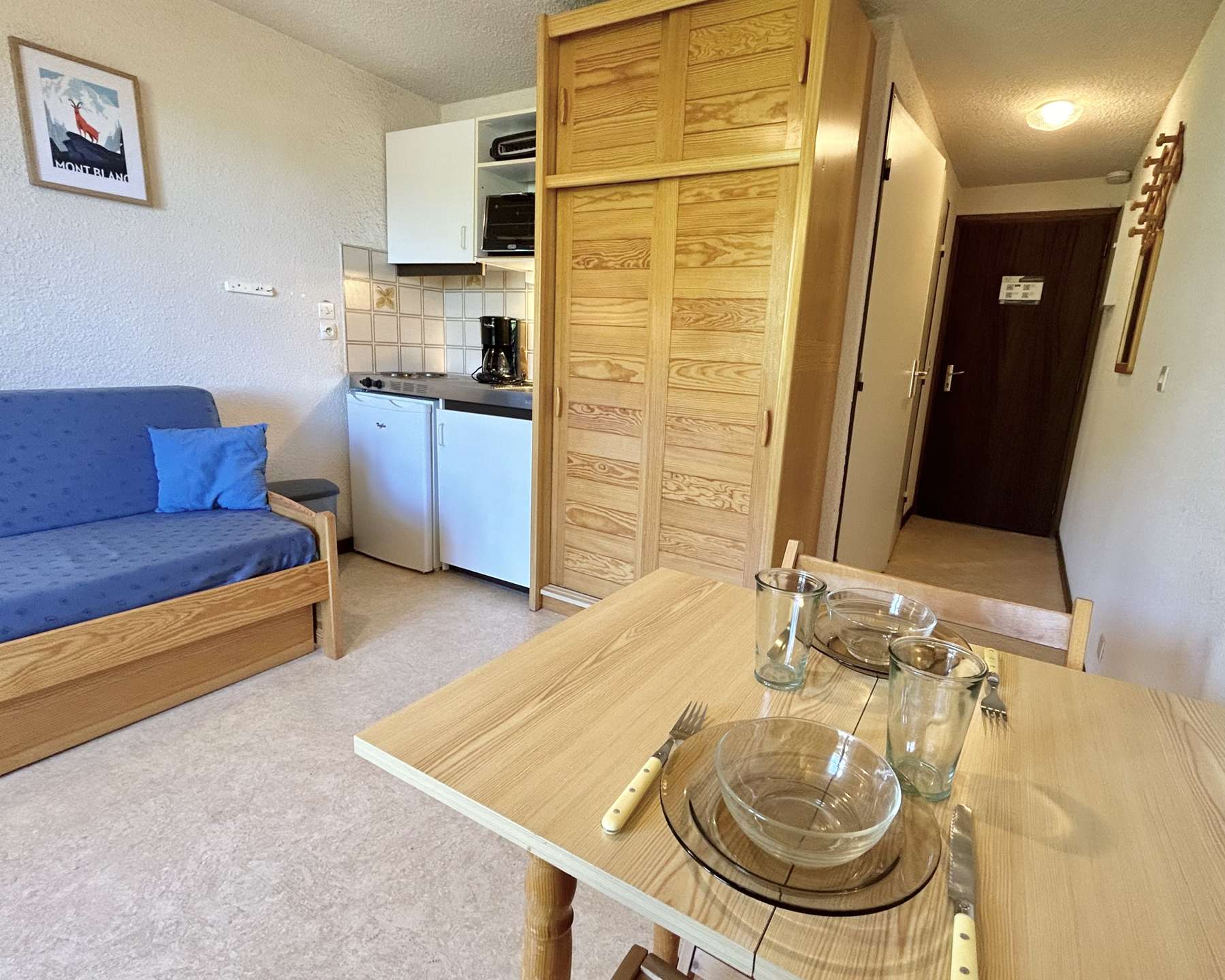 HALF-QUARTER (74) - Le Front de Neige Studio - approximately 17.5 m² - 2 people Set of three chalets built on the heights on the edge of a forest. Vast green spaces, quiet site. The apartment on the 1st floor without elevator is composed of an entrance hall, a bathroom, a separate toilet, a kitchenette open to the living room and a living room with 1 single sofa bed + 1 pull-out bed (70x190), television - West balcony access Bed equipment: 2 pillows (60 x 60) - 2 duvets (140 x 200) - 1 duvet (220 x 240) The plus of this snow apartment: Locker skis - Outdoor parking shared with the residence.
