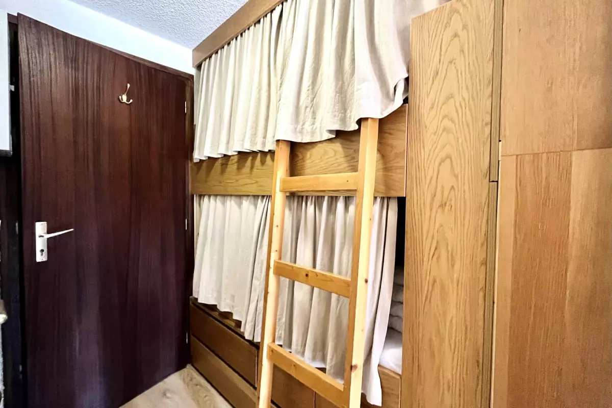 - sleeping areas with a new sofa bed and a bunk bed: Low bed of 2m * 80cm and high bed quite short (1 m 80 * 80 cm is therefore suitable for a child or small person, but will be uncomfortable for tall people);