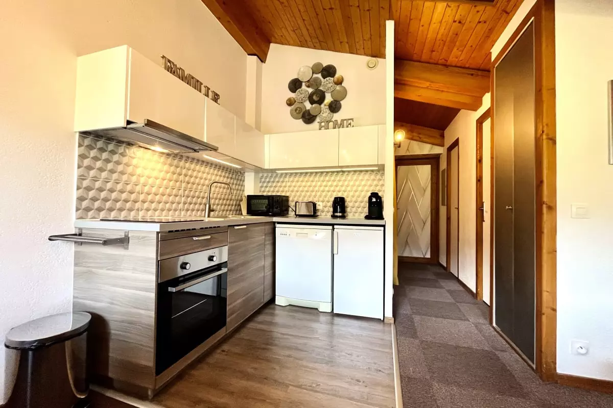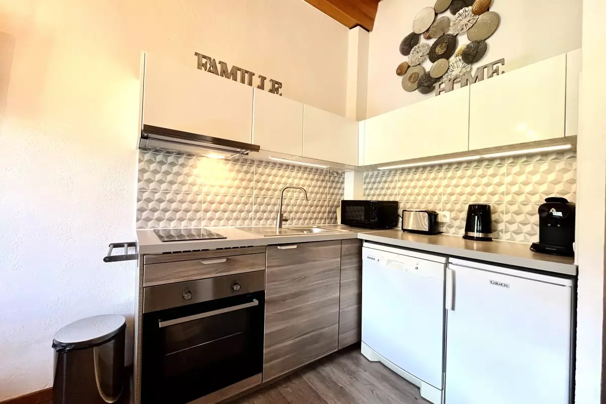 The apartment is equipped to make your stay enjoyable: a coffee machine for your mornings, a television for your evenings, and a well-equipped kitchen with an oven, microwave, and dishwasher for preparing your meals. Linens, a hairdryer, and an iron are also provided. You'll also benefit from a garden, ski storage, and a tennis court for moments of relaxation or outdoor activity.