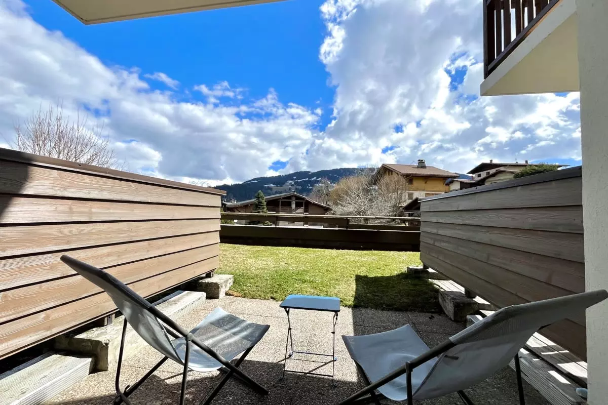 - a garden with 4 deckchairs and a table to enjoy nature, the peace and quiet and the breathtaking view of Mont Blanc!