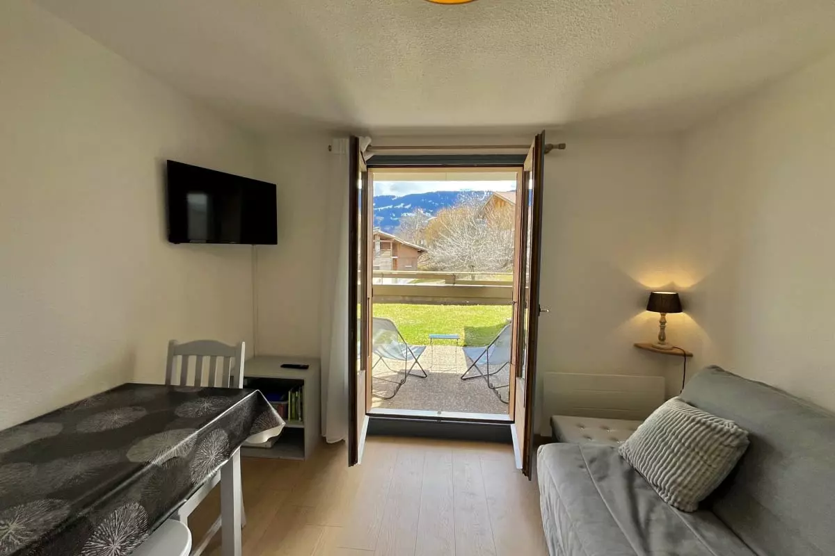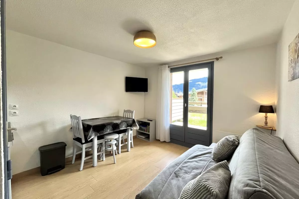 Ideally located on the ground floor of a very quiet chalet, between Combloux and Megève, this apartment includes: