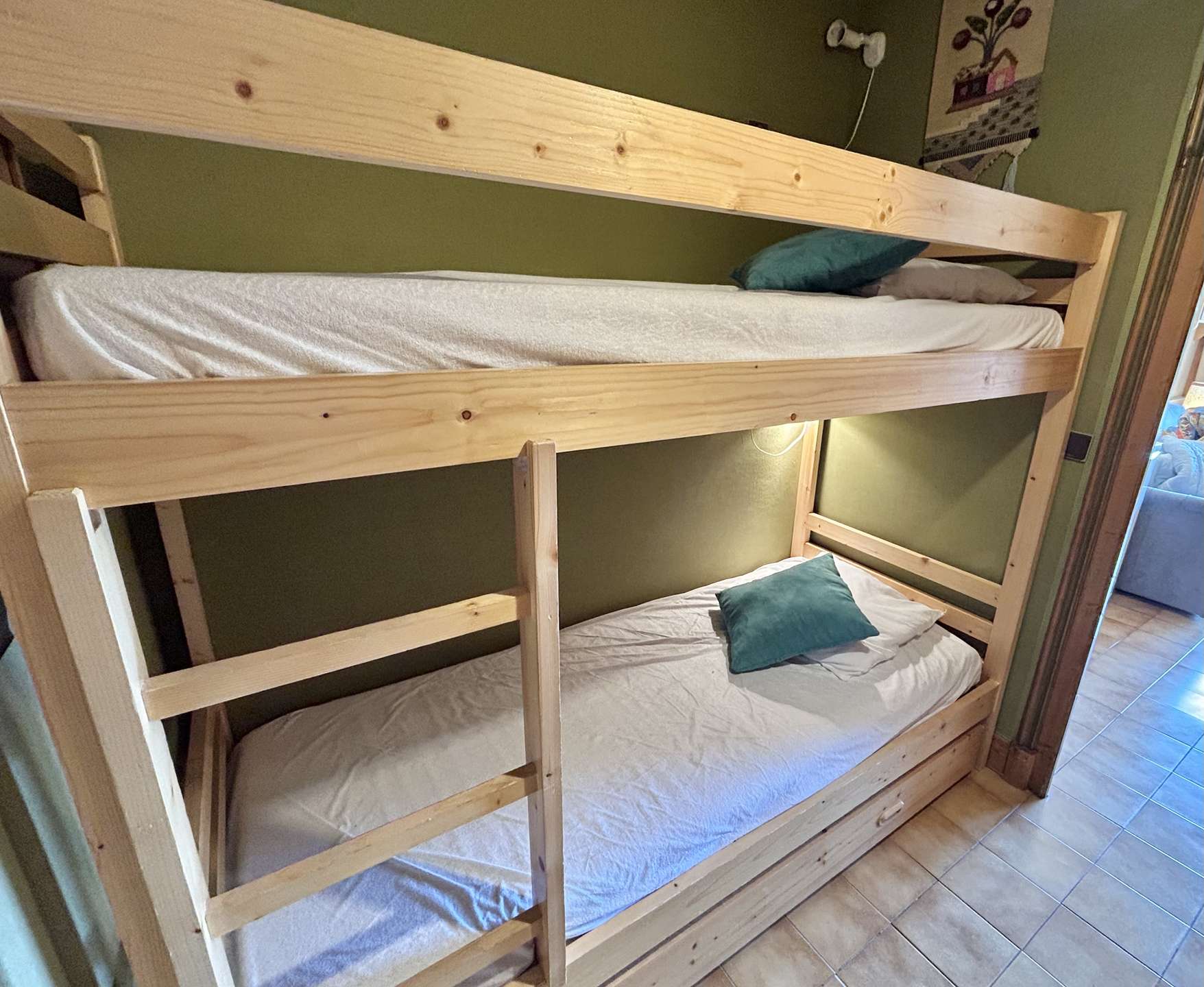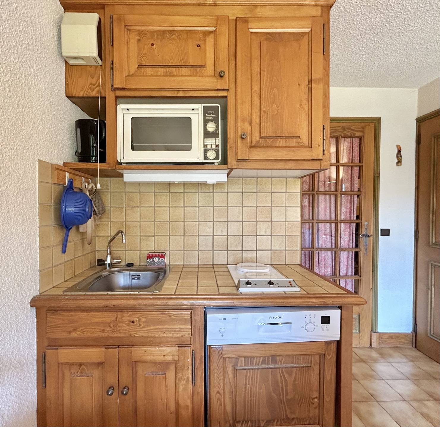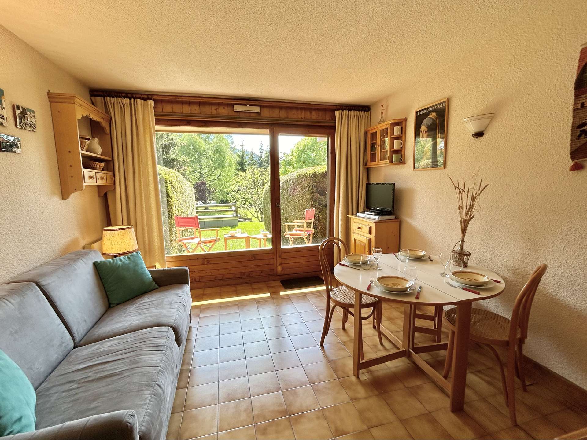 Megève (74) - Mont d'Arbois - Le Golf Blanc Studio + mountain area - approximately 21 m² - 2/4 people Pretty little alcove studio - Located 750 m from the gondola and the Mont D'Arbois Golf Course Return on skis possible from the “Les Mandarines” residence. The apartment, on the ground floor, is composed of an entrance with 2 bunk beds (80 x 190) (the upper bed is not suitable for children under 6 years old), a separate toilet, a bathroom, an equipped kitchenette open to the living room and a living room with 1 2-seater sofa bed (140 x 190) - Television - access to the South/West terrace and garden (not fenced) Bed equipment: 2 duvets (140x200) - 1 duvet (200x200) - 3 square feather pillows and one rectangular The advantage of this apartment in the snow: it has a covered parking space No. 8 and a ski locker/ This apartment is classified 1-star furnished tourist accommodation.