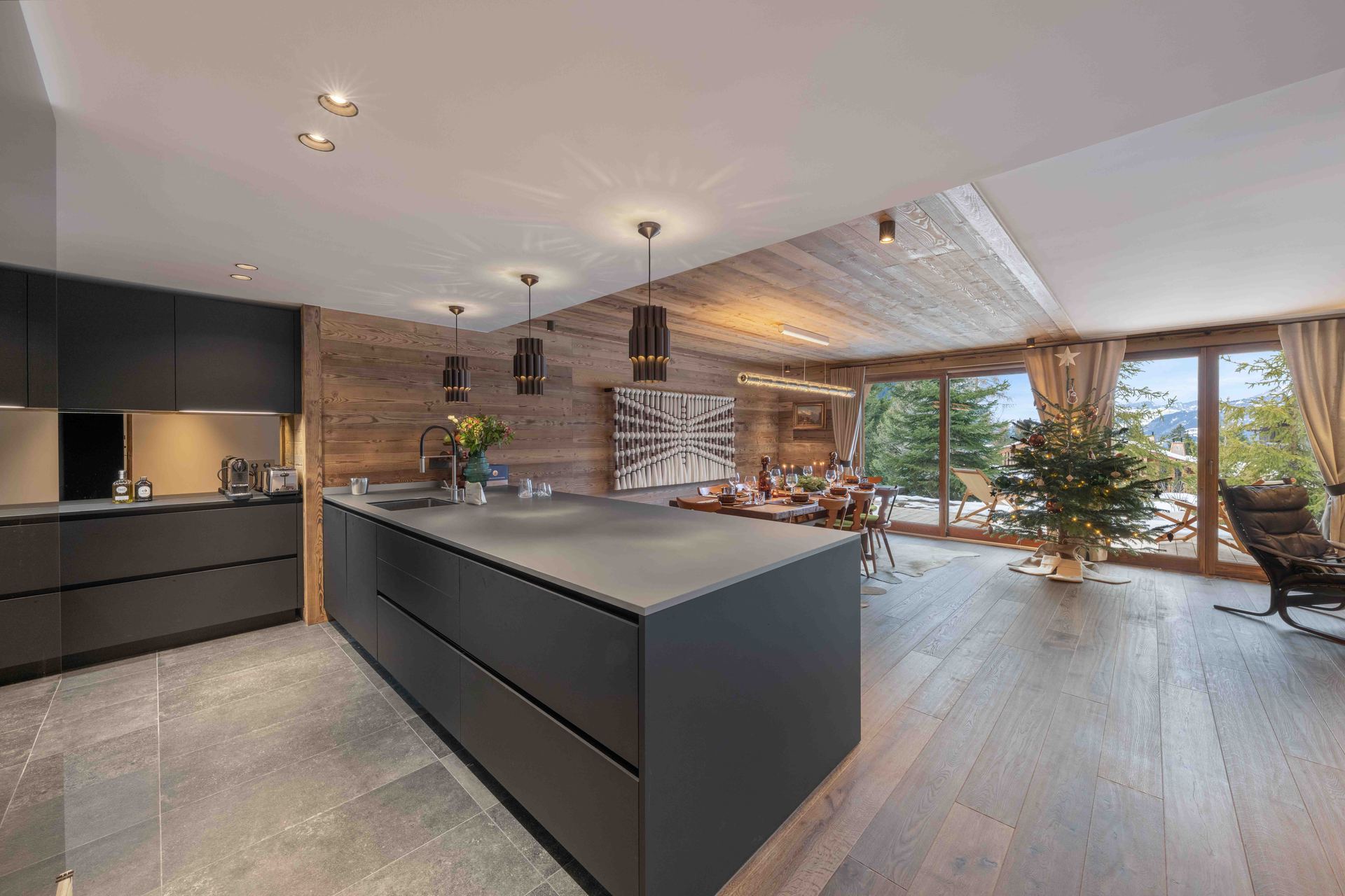 Luxury 115m² apartment in Mont d'Arbois, just a few meters from the slopes. Located on the ground floor of a new residence, this apartment is perfect for comfortably accommodating up to 4 adults and 4 children. The spacious and light-filled living area is organized around a cozy living room, a fully equipped open kitchen, and a convivial dining area. The carefully crafted decor highlights selected works of art, refined furniture, and high-quality finishes, creating an atmosphere that is both contemporary and authentically alpine. The three bedrooms each have their own shower room or bathroom, offering privacy and comfort to every occupant. Underfloor heating, a guest toilet, and a laundry area with a washer and dryer complete the amenities.