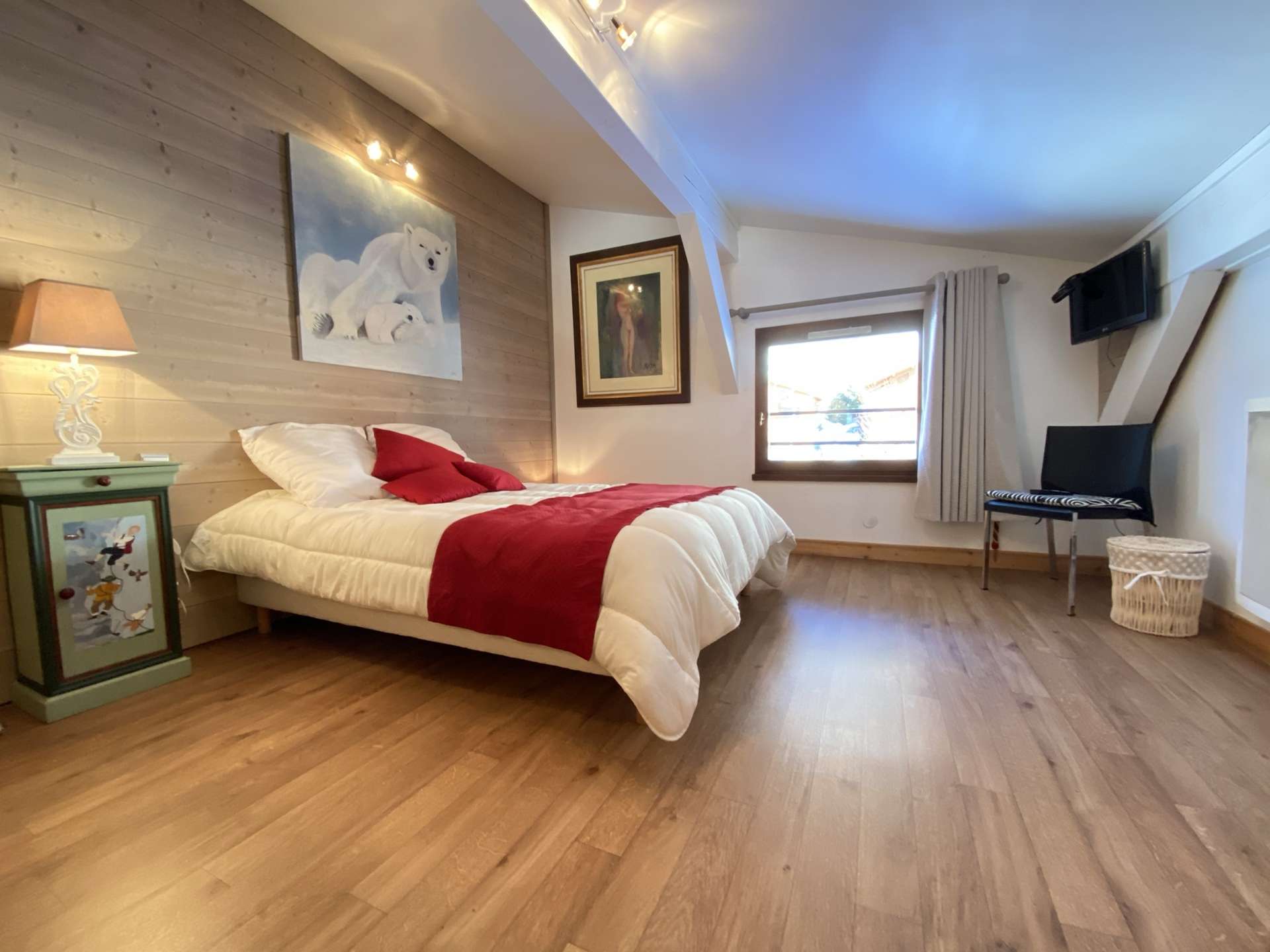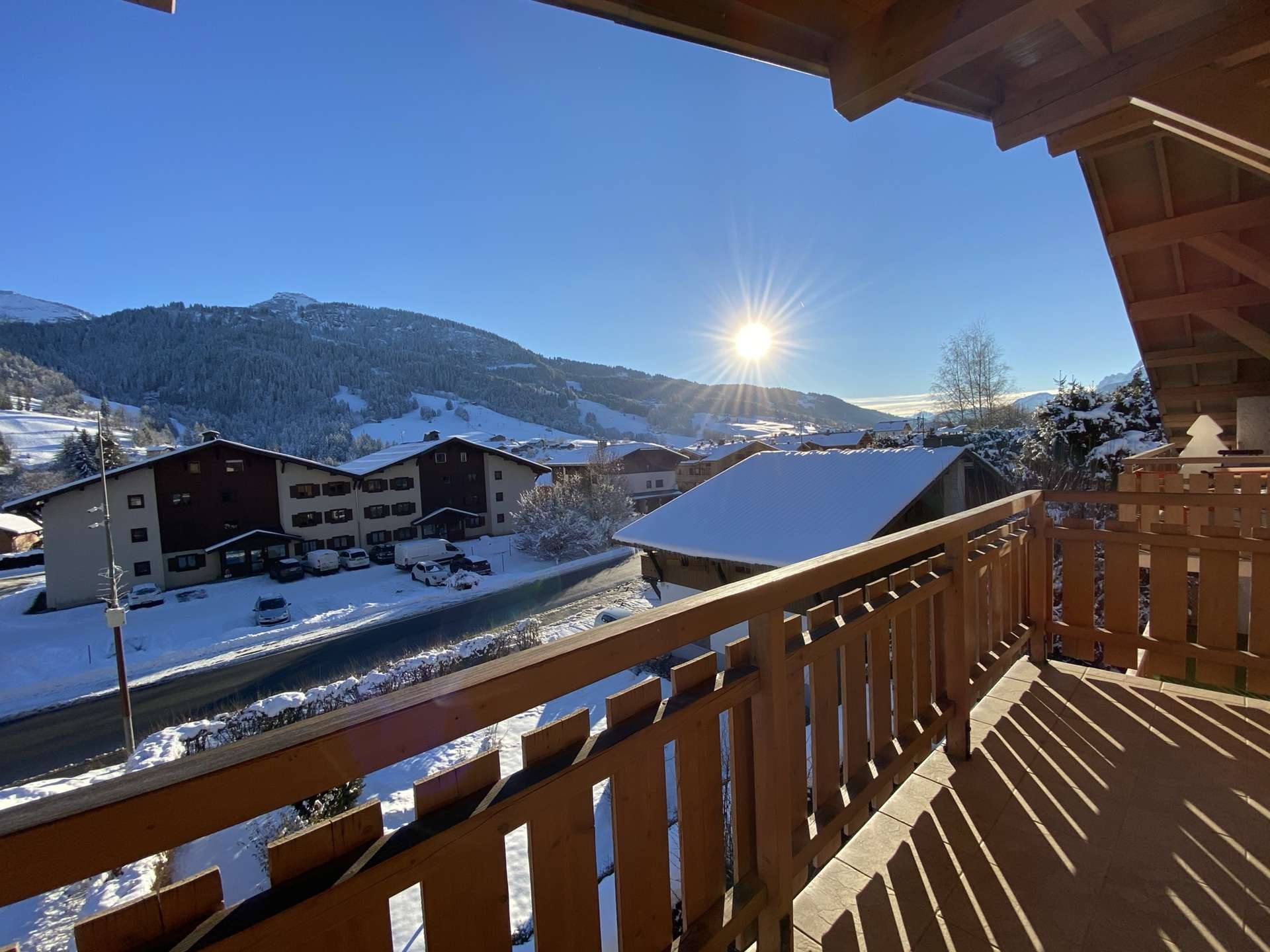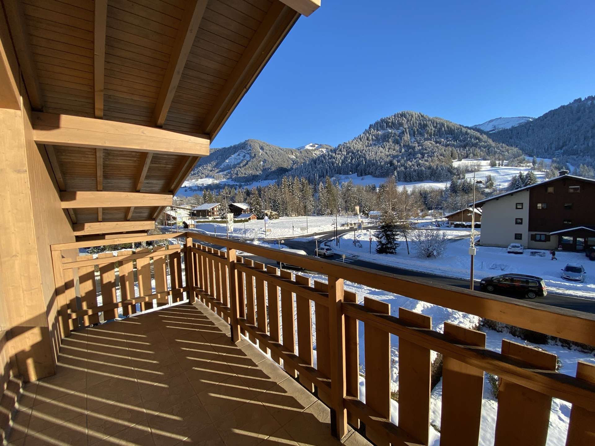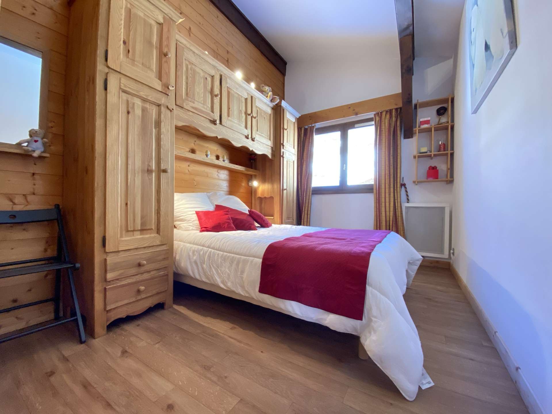 This prestigious apartment is located not far from the new lake (250 m), the ski slopes (approximately 1 km or ski bus stop 50 m away), and the village centre (550 m). The hot air balloon launch site is only 70 m from the residence.