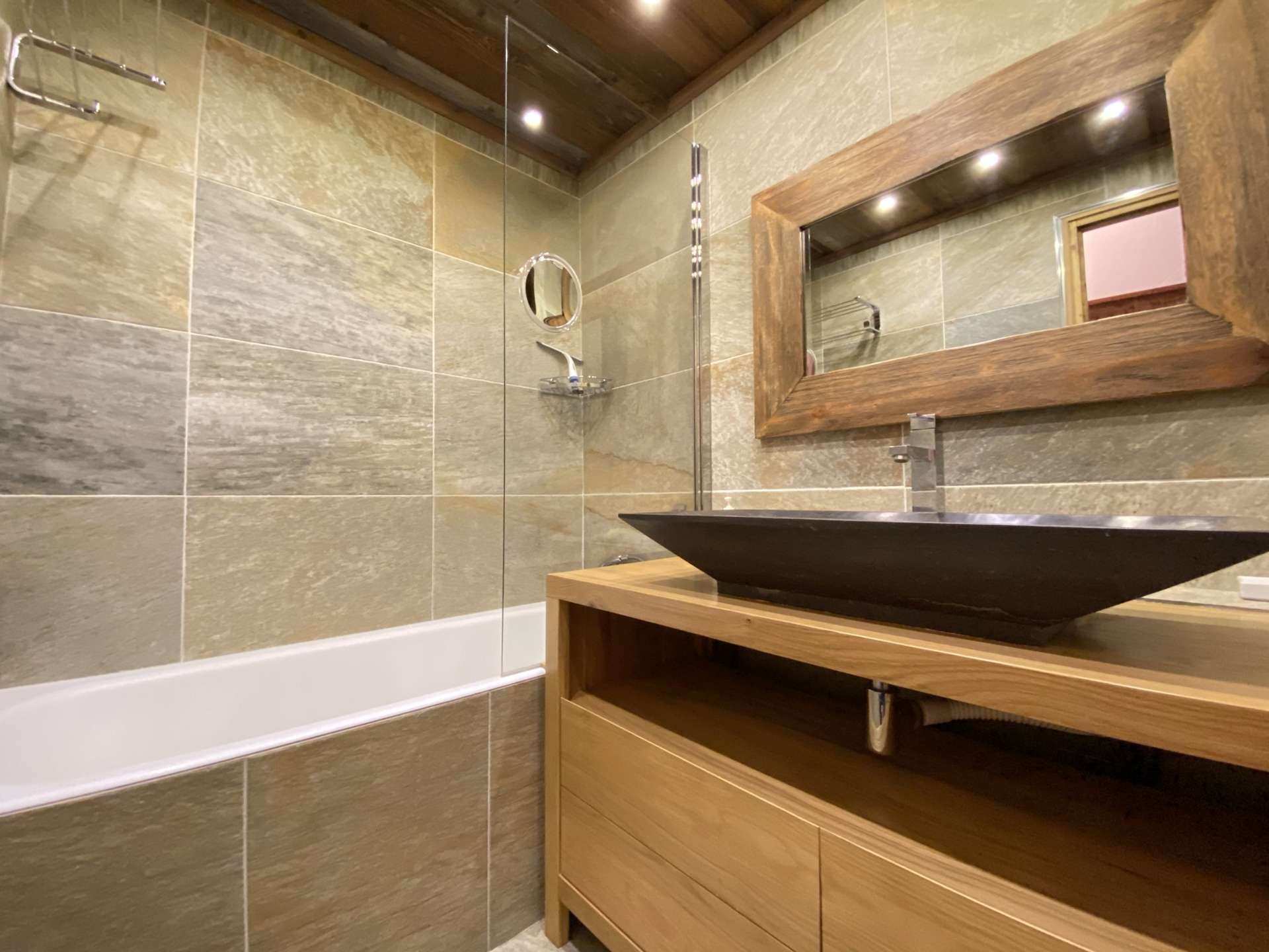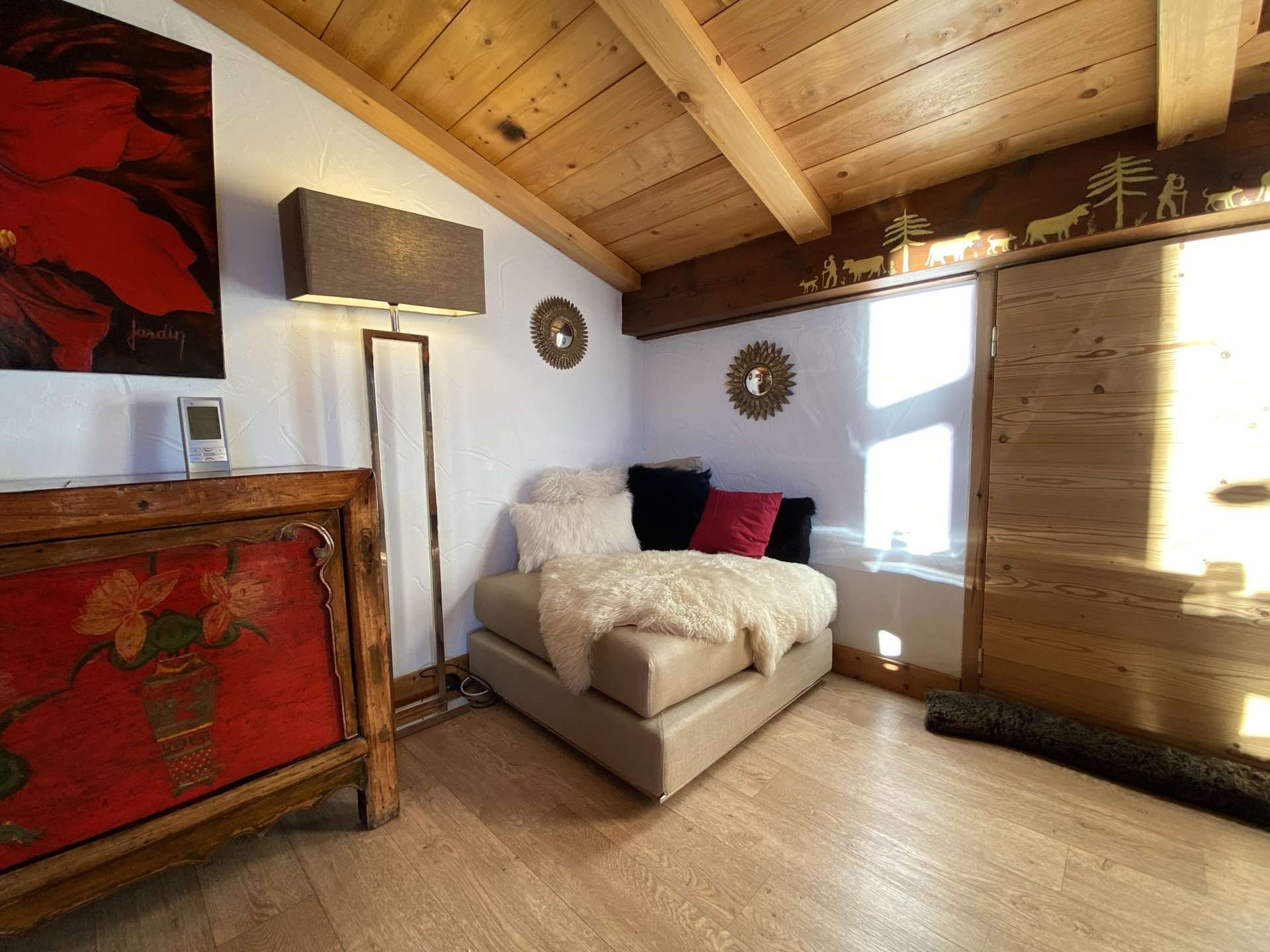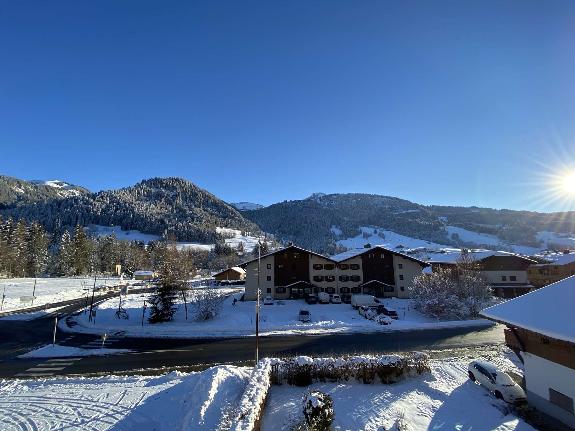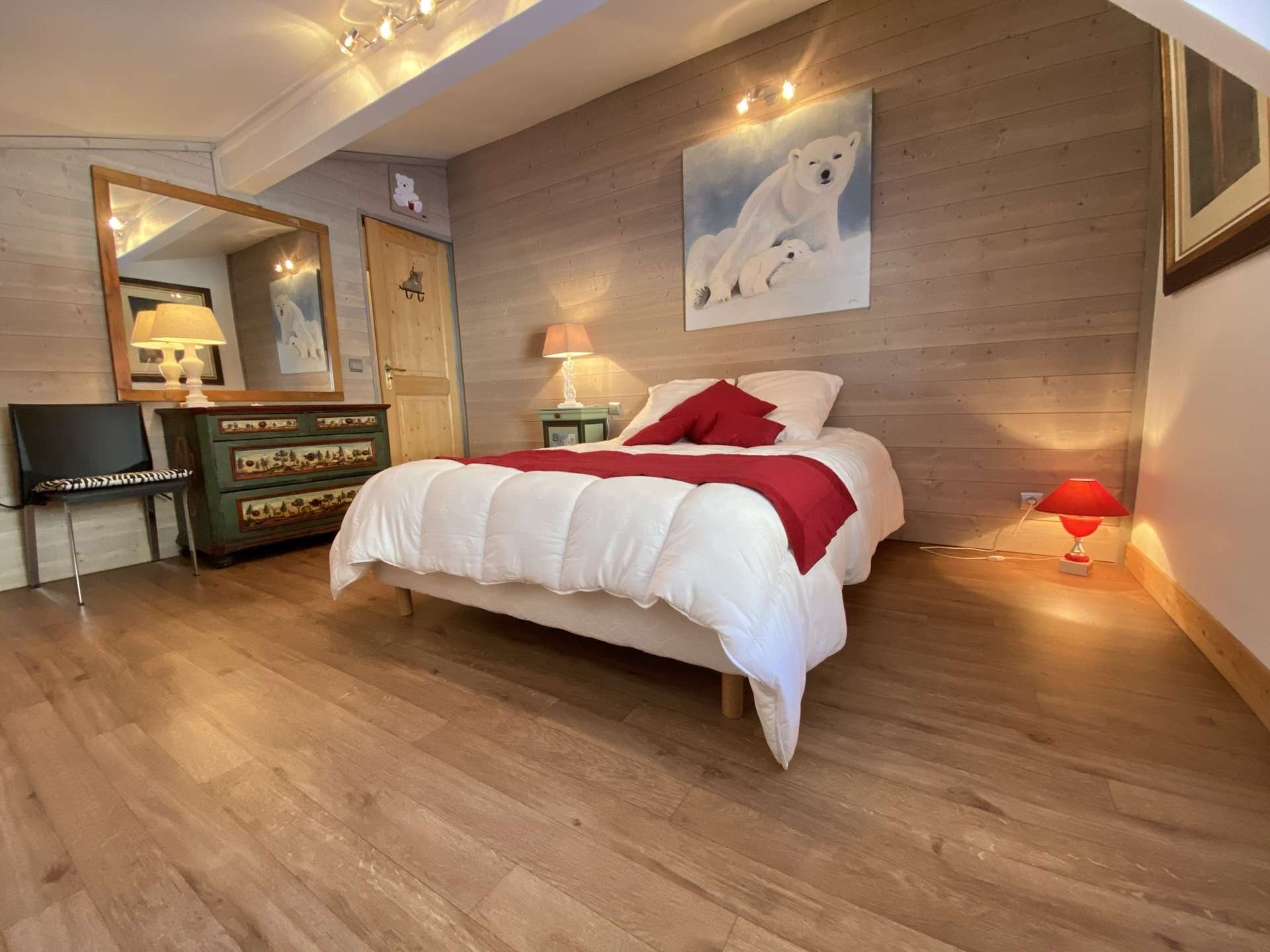 This prestigious apartment is located not far from the new lake (250 m), the ski slopes (approximately 1 km or ski bus stop 50 m away), and the village centre (550 m). The hot air balloon launch site is only 70 m from the residence.