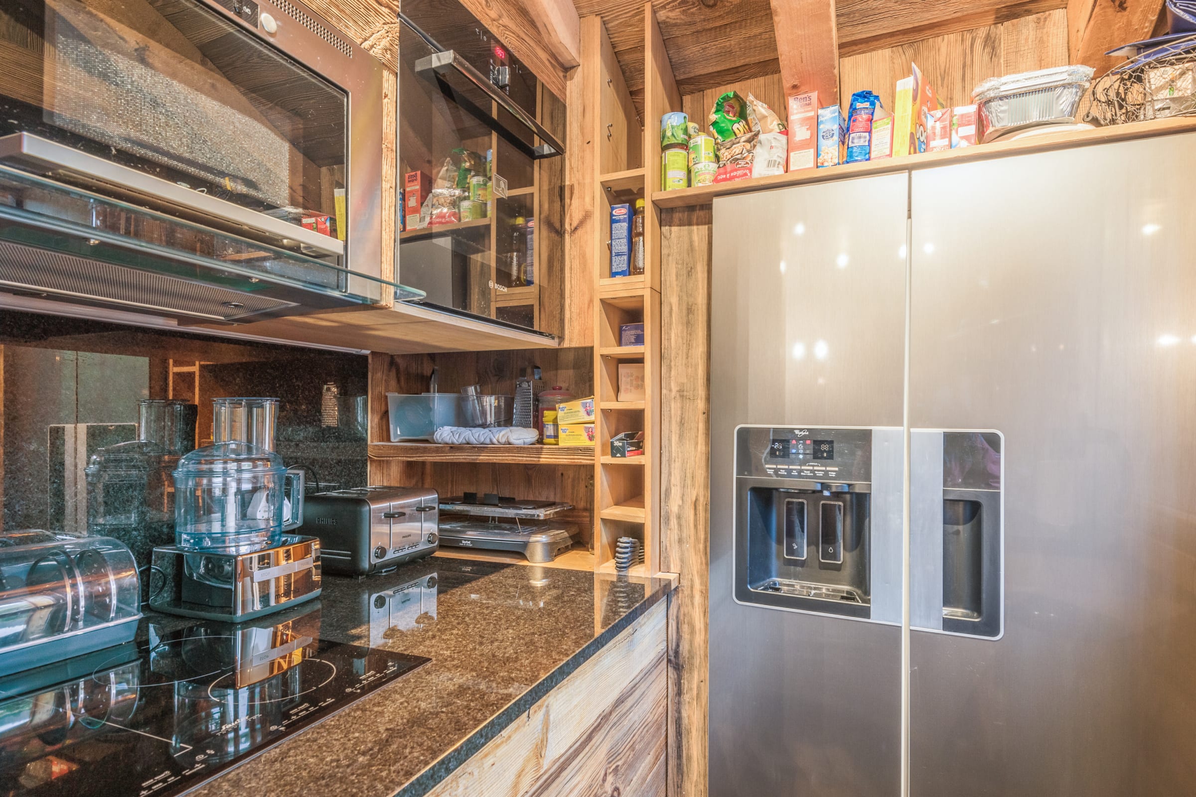 - an open perfectly-equipped kitchen (coffee machine, toaster, oven, microwave, hot plaques, fridge, dishwasher, freezer),
